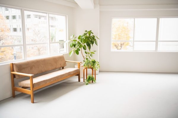 外苑西通り沿いの自然光が豊富に入るナチュラルな撮影スタジオ。シンプルで使い勝手抜群。ベッドやソファなどの家具もあり生活シーンの演出も可。控室あり。
