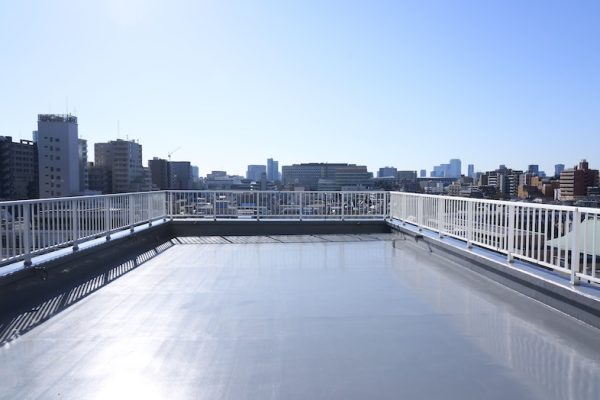 多方面の窓から豊富な自然光が差し込むナチュラルな撮影スタジオ。各種商品撮影や、キッチンでのフード撮影におすすめ。高層ビルを背景にしたテラスでの撮影も。