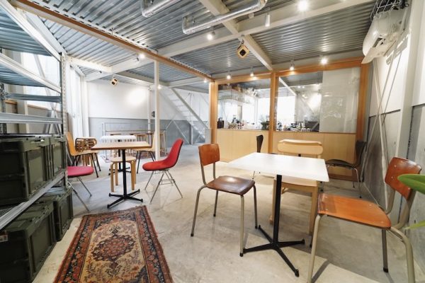 工場跡をリノベーションしたカフェをロケ地として利用できます。開放的な空間とキッチンカー、こだわりのアンティーク家具や暖炉が特徴。屋上利用も相談可能。
