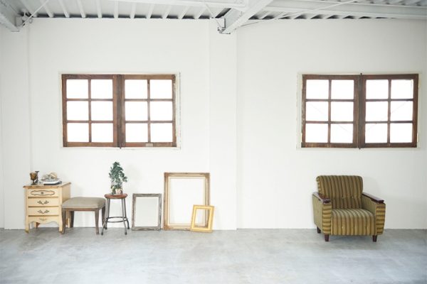 天高3m以上、自然光豊富な撮影スタジオ。白壁・コンクリート壁の複数の背景。インタビューシーンやアパレルの商品撮りに最適。衣装等もお気軽にご相談下さい。