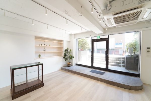 表参道駅より徒歩5分、白壁、モルタル床などの洗練された100㎡以上の空間が魅力。自然光と緑の調和が取れた空間で、撮影、配信、対談、イベントなどが可能。