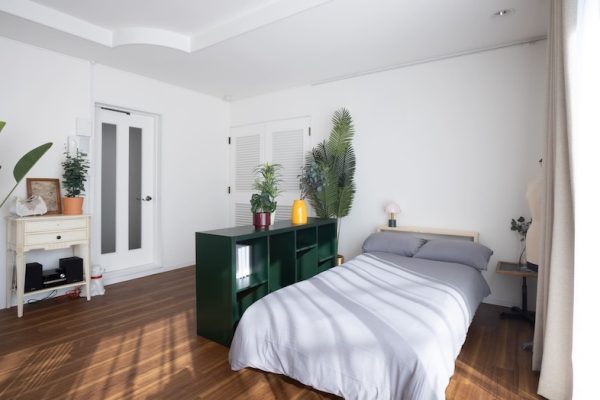 駒場東大前駅から徒歩3分。白壁にウッド調の家具・小物、グリーンが揃うナチュラルスタジオ。カウンターキッチン、洗面台、ベッドルームなど生活風景の撮影に。