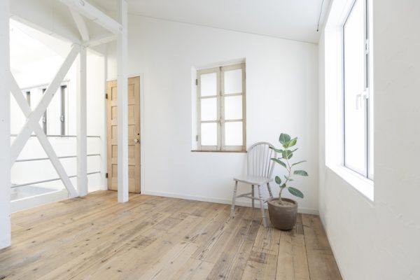 3面採光と西陽が魅力のスタジオ。白壁×コンクリート床、ベージュ壁×木床の2エリアが有。植物やアンティーク家具も撮影利用可。オプションでカフェシーンも。