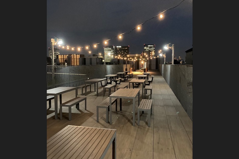 使い勝手抜群なシンプルな設計で、障害物がないフラットな広々スペース。ウッドデッキを基調とし、ベンチや屋根開閉式テントもございます。昼間は自然光を活かしたナチュラルな撮影ができ、夕方には美しい夕焼け、夜はスカイツリーのライトアップを背景にした幻想的なシーンも演出可能です。ウエディングフォト、ファッション、広告、MV、映画、ドラマの撮影など多彩な撮影用途に対応できます。また、広々としたスペースはイベントにも最適です。