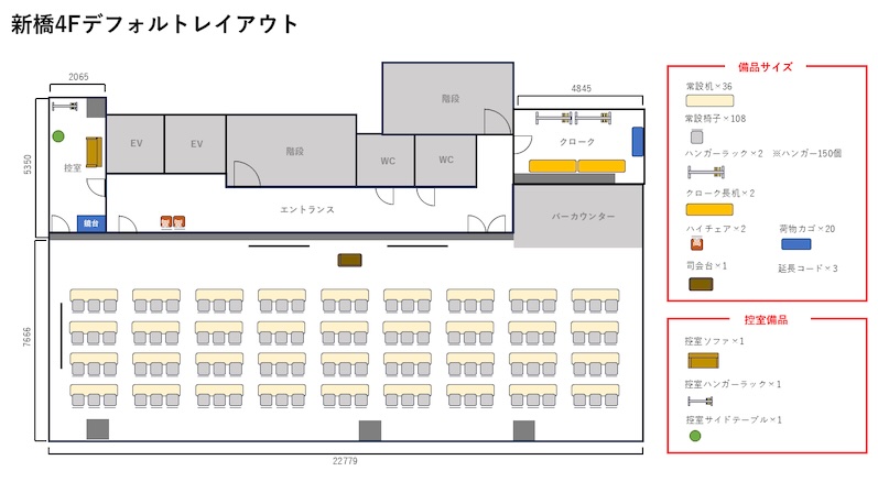 ・控室利用料金:2,200円/1h〜
