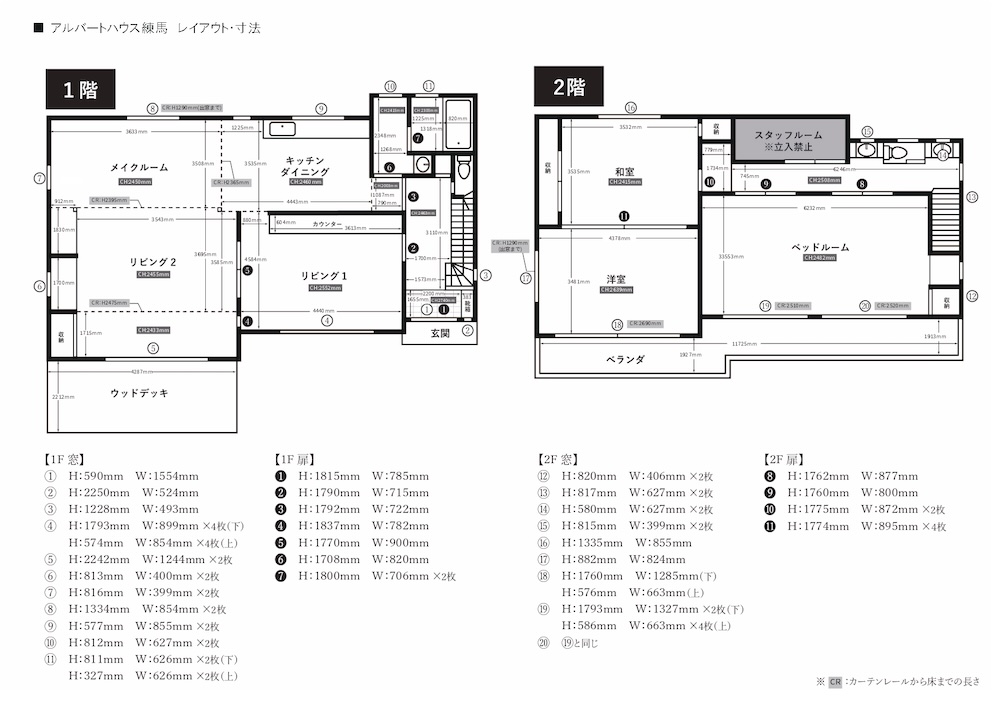 1階にはキッチンダイニング、2つのリビング、メイクルーム、ウッドデッキが、2階には和室、洋室、ベッドルーム、ベランダがあります。また、レトロなピンクタイルのバスタブも備えているので、1棟で全ての生活シーンの撮影が可能です。