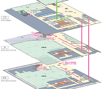 荷捌き場から17階到着後、速やかにスペース内まで台車等を移動させるようお願いします。