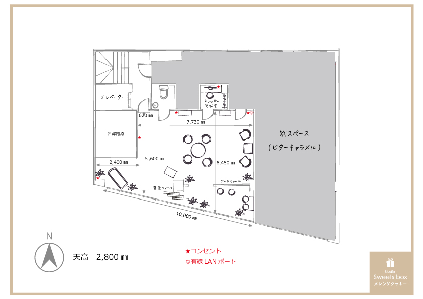 隣接するスタジオ「ビターキャラメル」を他のお客様がご利用中の場合は、構造上お声や音などが聞こえる場合がございますので、あらかじめご了承下さい。音を気にされる方はビターキャラメルも同時間帯をご予約ください。
