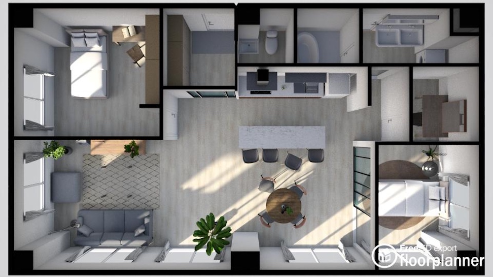 3面採光の窓から豊富な自然光が入る明るい空間。