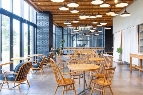 カフェ・レストラン・ラウンジ・バーシーンに最適な452平米の撮影スタジオ。テーブル席エリア、本棚があるラウンジエリアで撮影可。最大100名収容可。